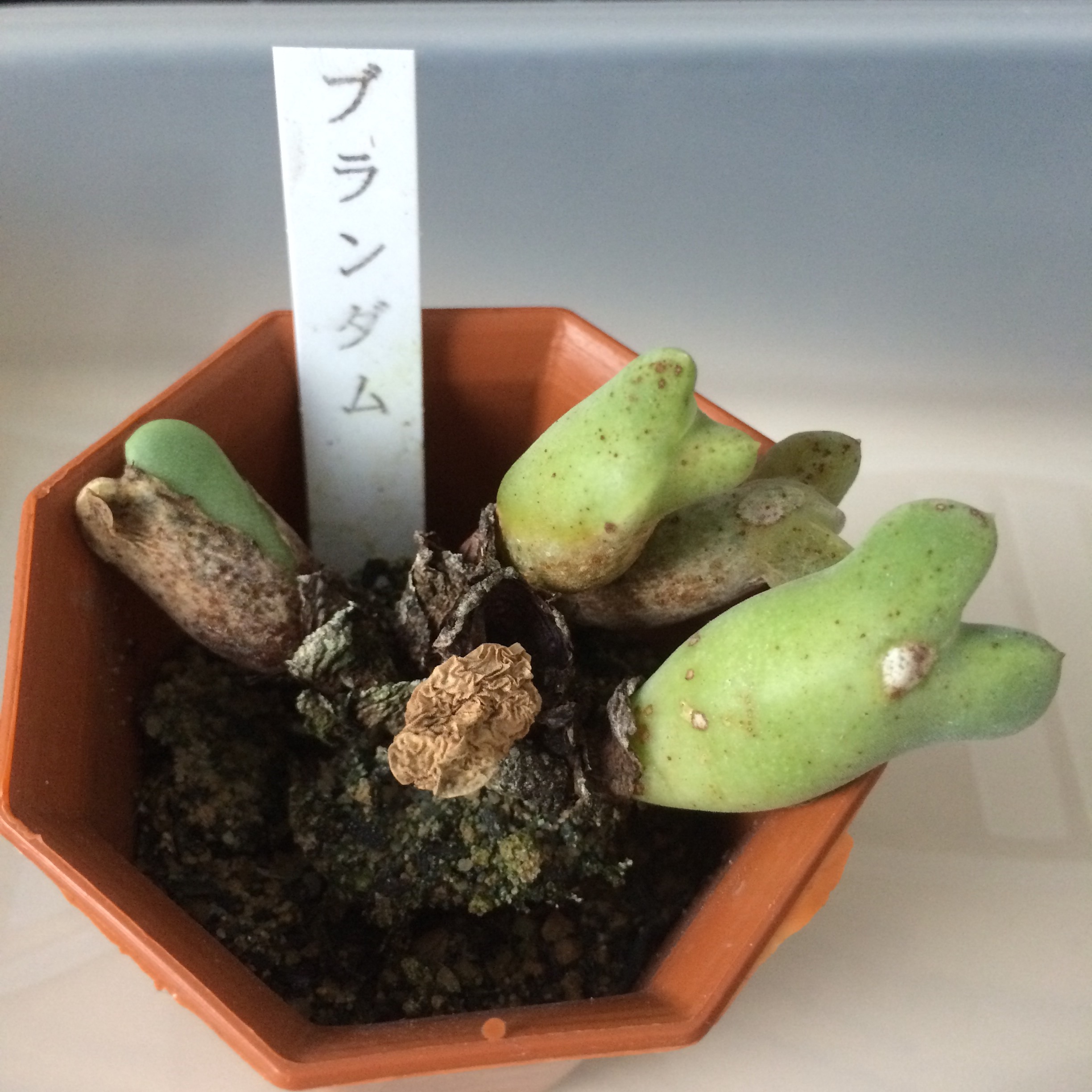 あれリトープスが植わってたであろう鉢だ絶対…青磁玉って品種あるし、鉢植え中央に何かが干からびてたし…