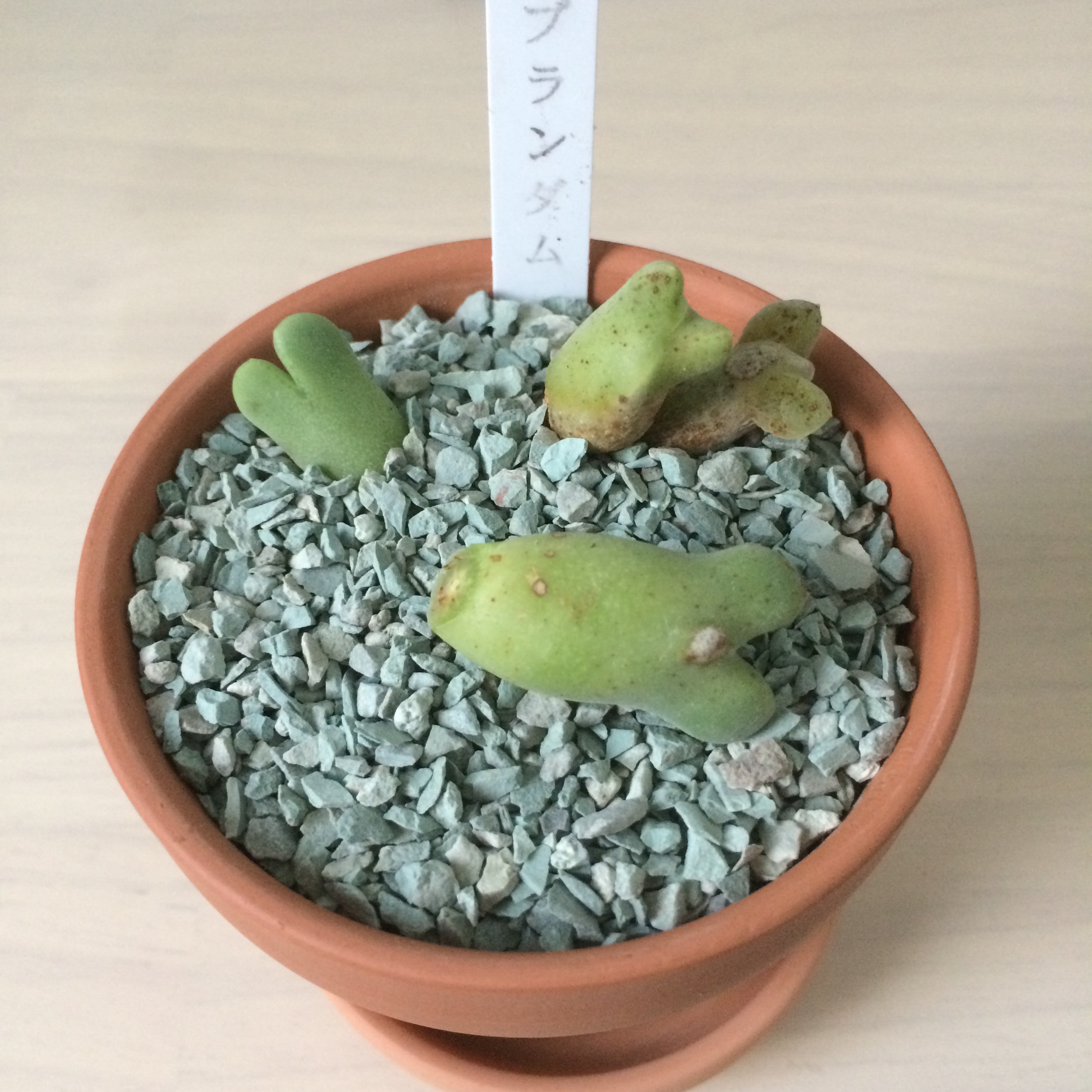 というか多肉植物コーナーの土だけの小さな鉢植えがあったんですね、そいで青磁玉って書かれたタグが挿さってた。